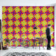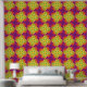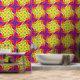 Dieses neue Tapete-Design zeichnet sich durch ein lebendiges und fett geometrisches Muster aus. Das Design umfasst überlappende Formen in verschiedenen hellen Farben wie Rot, Orange, Gelb, Grün und lila. Das sich wiederholende Muster bildet eine kompakte, sternähnliche und rautenähnliche Form, die dem Hintergrund ein dynamisches und lebendiges Aussehen verleiht.