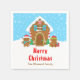 Diese niedliche und festliche Serviette verfügt über ein niedliches Lebkuchenhaus mit roten und grünen Süßigkeiten. Daneben sind bezaubernde Lebkuchenmänner mit Geschenken, in Weihnachtsmannmützen und Schal gekleidet. Im Hintergrund ist ein hellblauer Winterhimmel mit eleganten fallenden Schneeflocken. Der Text verbindet dekorative und serifenlose Schriftart für einen stilvollen und modernen Look. Dies ist ideal für ein Weihnachtsgebäck mit Party.