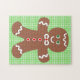 Dieser glückliche Lebkuchenjunge trägt einen Bogen und drei rote Knöpfe auf seinem Anzug. Hintergrund ist grüner Gingham. Alle ursprüngliche Kunst von mir:)