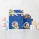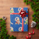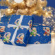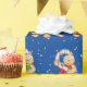 Niedliche Lebkuchen mit Süßspeisen in den Farben Rot und Grün der Weihnachtszeit auf blauem Hintergrund und Schneeflocken. Die Hintergrundfarbe kann geändert werden.
