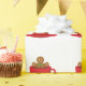 Lebkuchen Mann entspannt in heißer Schokolade Rot Geschenkpapier