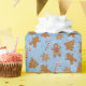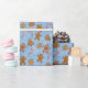 Weihnachtsgebäck und Bonbons auf hellblau strukturiertem Hintergrund.