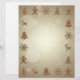 Elegante und köstliche Weihnachtsbilder: dekorierter Lebkuchenbaum, Mensch und Hirsch mit goldenen Sternen auf braunem Bukahintergrund.