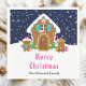 Diese niedliche und festliche Serviette verfügt über ein niedliches Lebkuchenhaus, das mit rosa und grünen Süßigkeiten dekoriert ist. Daneben sind bezaubernde Lebkuchenmänner mit Geschenken, in Weihnachtsmannmützen und Schal gekleidet. Im Hintergrund ist ein marineblauer Winterhimmel mit eleganten fallenden Schneeflocken. Der Text verbindet dekorative und serifenlose Schriftart für einen stilvollen und modernen Look. Dies ist ideal für ein Weihnachtsgebäck mit Party.