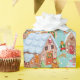 Ein lustiges und farbenfrohes Dorf mit schneebedeckten Lebkuchenhäusern (Aquahintergrund)