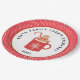 Diese Papiertafel für den Kekskochtausch verfügt über eine Tasse von Marshmallow-heißem Kakao mit einem Pfefferkuchen im Inneren mit weißem Hintergrund und einem roten und weißen Polka-Punkt Außenrand. Koordiniert mit der Sammlung Weihnachts-Cookie Exchange.