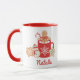 Diese Tasse ist ideal, um im Urlaub warmen Kakao zu trinken. Im Design steht ein Gingerbrot-Mann, der in einer Tasse heißen Kakao mit Marshmallows sitzt. Sie können mit Ihrem Namen personalisieren. Koordiniert mit der Sammlung Weihnachts-Cookie Exchange.