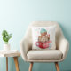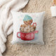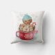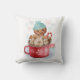 Weiße Dessert Thema Weihnachtskissen bietet ein niedliches Aquarellkuchen in einem Strick Winter, das ein warmes Bad in einer Tasse von heiße Schokolade mit Zuckerrohr, Marshmallows und pastellfarbenen Schneeflocken Akzenten genießen. Kunstwerk von KL Stock.