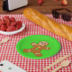 Lebkuchenmann mit orangefarbenen und grünen Tasten Pappteller