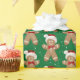 Lebkuchenmann mit weißem Schneeflockenmuster auf grünem Hintergrund. Die Hintergrundfarbe kann geändert werden.