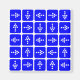 Ein quadratisches Design bestehend aus 25 kleineren, kreisförmigen Quadraten mit je einem LED-Pfeil, der in verschiedene Richtungen zeigt und ein interessantes abstraktes Design schafft.