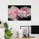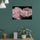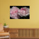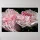 Leda ist eine antike Damaskus-Rose, die aus dem frühen 19. Jahrhundert verabredet wurde. Die Blütenblätter sind vielfältig und variieren in der Farbe von Blüte bis Blüte. Cremefarben und oft mit dunkelrosa getönt, heißt sie auch "Herbst-Damast" oder "Gemäldete Damaske". Dieses Poster zeigt zwei rot-rosa duftende Blüten.