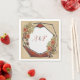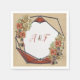 Weiche, helle Butterfarbe Wildleder mit einem geometrisch braunen Lederrahmen mit Blume aus Cremes, Rot und Grün-Blätter. Mit den Initialen der Hochzeitsreise