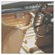 Ein Bild des Innenraums eines Autos mit den Sitzen umfaßt im Sahneleder- und Faserarmaturenbrett