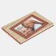 Leder & Wildleder Texture Art Dekorationen mit einem roten Lederrahmen geben dem Design einen schicken und glamourösen Look, um für Ihren großen Tag personalisieren.