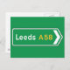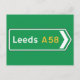 Ein originelles britisches Straßenschild, das die Stadt Leeds ankündigt.