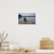 Leerer Stuhl auf dem Dock mit Blick auf das landschaftliche Poster.