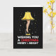 Lassen Sie Ihren Urlaub mit einer fröhlichen Weihnachtskarte mit einem abscheulichen und unterhaltsamen Design erstrahlen! 🎄 Stellen Sie sich eine Cartoon-ähnliche Abbildung vor, wie ein weibliches Bein einen schwarzen, hochhackigen Schuh und Fischnet-Strümpfe verbindet, die aus einer lebhaften gelben Lampe mit einem knallschattegierten Schatten herausgucken. Dieses auffällige Bild ist auf einem soliden schwarzen Hintergrund zentriert und macht es zu einem Pop mit Persönlichkeit und Charme. Unter dem Kunstwerk ist die festliche Nachricht "WISHING YOU A CHRISTMAS that is MERRY & BRIGHT" in einem Not leidenden Schriftart geschrieben. Die Wörter "MERRY & BRIGHT" werden in fröhlichem Rot hervorgehoben, stehend vor der Erholung des Textes in Weiß auf schwarzem Hintergrund. Diese einzigartige Karte bringt jedem in dieser Ferienzeit ein Lächeln ins Gesicht! 🌟
