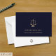 Senden Sie mit diesen rechtlichen Mitteilungskarten professionelle Botschaften. Mit einer Goldjustizskala auf marinischem Hintergrund sind sie perfekt für Anwälte geeignet. Schreiben Sie personalisierte Notizen an Kunden und Kollegen mit Stil.
