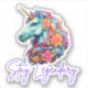 Ein Rainbow Unicorn, das den bleibe legendären Aufkleber sagt