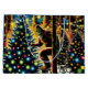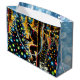 Weihnachtsgeschenktasche. Bigfoot schmücken Weihnachtsbäume im Wald mit Ziergegenständen und Weihnachtsbeleuchtung. Mond scheint durch die Bäume. Fügen Sie Ihrem Weihnachtsgeschenk etwas sasquatch-Spaß mit dieser Comic-Geschenktasche hinzu.