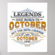 Legends Are Born In October 1992 Womens Birthday C Poster