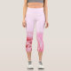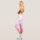 Leggings mit rosa Brustkrebsband am Bein und rosa erhoben sich am Boden.
