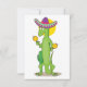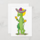 Ein lustiger Entwurf eines Leguans in einem Sombrero. Der Leguan versandet mit einem Sombrero auf dem Halten einiger maracas. Dieser Leguan in einem Sombreroentwurf schaut groß auf diesem Einladungen