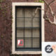 Eine grafische Abbildung eines Apfels, einer Tafel und eines Buches von Künstlerin/Designer Charmaine Paulson auf einem Klassenfenster für Lehrer.