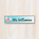 Das Namensschild des hellen und bunten Schreibtisches, das mit Ihrem Namen mit Monogramm ist, Lehrer nennen, Stylistname oder anderer Fachleutename. Vervollkommnen Sie für das Sitzen auf Ihrem Arbeitsschreibtisch, Klassenzimmerschreibtisch, Arbeitsplatz oder Empfangsbereich. Schicker und stilvoller rosa Aquarellschmetterling, zum herauf Ihren Tag zu erhellen. Blauer Steigungshintergrund betont durch Ihren Monogrammnamen.