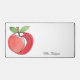 Dieser elegante Schreibtisch ist mit einem roten Apfel dekoriert. Einfach anpassbar. Perfekt als Geschenk eines Lehrers. Original Wasserfarbe © Michele Davies.