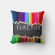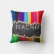 Einzigartiges, helles Tafellehrerkissen würde ein niedliches Lehreranerkennungsgeschenk für die Woche des Lehrers sein, oder zurück zu Schulgeschenk oder für Künstler oder Grafikdesigner sich darzustellen hat Fotogrenze oben und Unterseite von Reihen der Bleistifte in den mutigen, hellen Regenbogenfarben. Liest "Lehrer" in der Mitte in der modernen Beschriftung. Gegen einen Vintagen Tafelhintergrund des Imitats. Identische an Rückseite. Spaßgeschenk für Kunstlehrer und Künstler, auch. Wir haben mehr Lehrergeschenke und Kissenentwürfe in unserem Zazzle.com/angela65 kaufen.