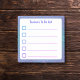 Dieser Lehrer, der auf Listen klebrige Notizblock macht, kann mit dem Namen des Lehrers personalisiert sein. Es ist ein kleines, viereckiges, 3x3 klebriges Notizblock mit blauen und lila Texttönen auf weißem Hintergrund. Es gibt eine Pseudo funkelnd lila und blaue Grenze. Sie können den Text, der "To Do List" enthält, zu einem anderen Listentyp ändern, wenn Sie möchten. Es gibt neben jeder Zeile ein Feld für Karo, das bei jedem Vorgang angekreuzt werden kann. Behalt es einfach mit nur 5 Sachen zu tun!