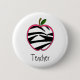 Lehrer-Knopf - rosa Kontur Zebra-Druck-Apples w Button
