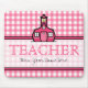 Ein mousepad für die Lehrer, die einen rosa Ginghamhintergrund kennzeichnen.  Text innerhalb des bloßen mittleren Abschnitts mit rosa Ordnung ist kundengerecht.  Logo des rosa Schulhauses über Text.