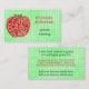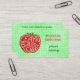 Dieser niedliche, personalisierte Geschäftskartenentwurf ist perfekt für Schullehrer und jedermann, das privaten Privatunterricht tut. Der Apfel hat einen splattered Aquarellfarbenblick mit den lustigen Wörtern, "lernen, dass Baby lernen." Er hat entworfen, wie die von Hand gezeichnete Typografie auszusehen ist geschnitten worden in die Frucht. Der Hintergrund hat ein hellgrünes Gitterfeld.
