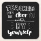 Lehrer öffnen die Tür, die Sie durch selbst Rechteckiger Pappuntersetzer