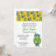 Eine niedliche Einladung perfekt für irgendeinen zurückziehenden Lehrer. Sie kennzeichnet eine gelbe Spitze mit Cartoonschildkröten und -rucksäcken. Eine Grafik eines weißen Bandes läuft entlang die Spitze. Sie fertigen allen Text besonders an.