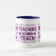 Phantastische Tasse mit dem Zitat "Lehrer werden lehren", umgeben von Schulmaterial