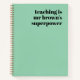 Ein minimalistisches Notizbuch für Lehrer mit einer Vintagen Retro-Typografie "Lehre ist die Supermacht des Lehrers" in schwarz auf einem sage-grünen Hintergrund. Das perfekte Geschenk für jeden Lehrer!