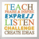 Unsere Teacher Worlds to Live By T - Shirt, Tasse, Tasten, Magnete, Karten, Aufkleber, Schlüsselketten, Mousepads, Hoodies, Wasserflaschen und andere Lehrer inspirierende multicolors Textdesign Artikel lautet "Teach, Loise & Inspirier, Express, Listen, Challenge, Create Ideas"! Diese Slogan-Artikel für LehrerInnen der Grundschule, der Oberstufe oder sogar der Uni sind großartige Geschenke!