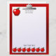 Eine Grafik einer Zwischenablage mit Papier und roten Äpfeln von Künstlerin/Designerin Charmaine Paulson auf Lehrer Letterhead Stationery. Die Schreibwarenhandlung verfügt über Vorlagen für Ihre Personalisierung.
