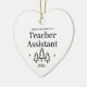 Erste Weihnachten als Lehrerassistent Herzschmuck für einen neuen Job Lehre. Elegante Porzellan Keramik Urlaubsornamente in Weiß mit schwarzer Schrift. Mit Weihnachtsbäumen und Sternen.