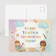 Hier ist die Postkarte für die Lehrer-Wertungswoche im Aquarellstil! 🎨 📚 Das Bild verfügt über ein Vintages Tafelgeschirr mit eleganter weißer Kalligrafie mit dem Text "Danke, Lehrer!", klassischen Apfel- und Buchelementen in einem gemütlichen Klassenzimmer.