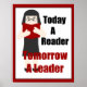 Ein grafisches Design eines Gals, der ein Buch von Künstlerin/Designerin Charmaine Paulson auf einem Poster liest. Der Text lautet "Heute ein Leser, morgen ein Führer". ©2008charmainepaulson