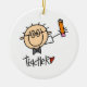 Lehrer T - Shirt, Tasse, Magnete, Knöpfe, Karten, Taschen, Aufkleber, Halsbecher, Kissen, Hüllen und mehr mit einem männlichen Strichmännchen Lehrer in einer Bugbrille Krawatte und Brille mit einem gelben Bleistift.