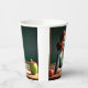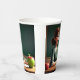 In diesen Papierbechern sitzt eine Lehrerin mit einem Apfel an ihrem Schreibtisch.