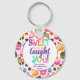 Wie süß es ist, von dir gelehrt zu werden! Ein wunderschöner Schlüsselanhänger für die Lehrerbewertung. Das macht ein lustiges und farbenfrohes Geschenk. Cupcakes und Süßigkeiten bilden das Muster - mit süß gefärbter Typografie.