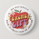Die Tasten "Teacher Life Weck Up Teach School Personalisiert Name" zeigen einen roten Apfel, der mit groovy Blume mit dem Retrotext "Lehrerleben" verziert ist, mit dem Text "Weck auf, lehre Kinder, sei phantastisch" unten in der modernen Schrift Typografie und personalisiert mit deinem individuelle Name. Perfekt für Ihren Lieblingslehrer für Lehrerbewertungen, Geburtstag, Weihnachten, Feiertage und mehr. Von Evco Studio entworfen www.zazzle.com/store/evcostudio