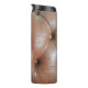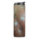 Leicht auf brauner Ledersofa-Oberfläche, textureab Thermosbecher